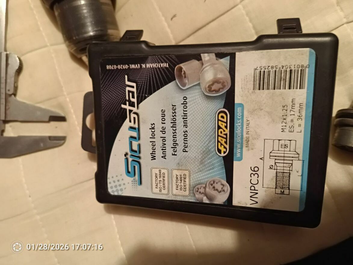 Śruby antykradzieżowe Farad Sicustar (najwyższy model) – zabezpieczają koła przed kradzieżą.
